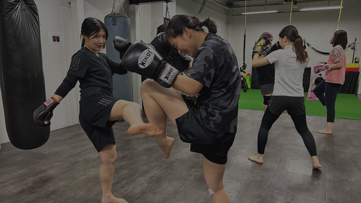 ⾮⽇常的な時間を過ごせて、ストレス発散できます。友達にキックボクシングを習っているというだけで、かっこいい!と⾔われるし、今まで運動は苦⼿でしたが、楽しく続けられるので、テクニックも上達していきたいと向上⼼もあがります。(レディースキックボクシング)